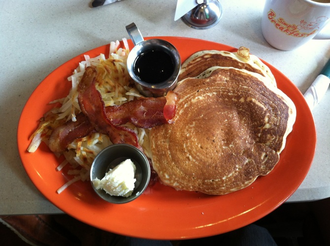 In retrospect, I should have ordered a stack of just the sweat cream pancakes like my main man Jared. I hate hashbrowns. Nothing against the potatoes themselves or people who love hashbrowns, just not my thing. However, all is well because the two pancakes and bacon were plenty to fill me. The platter also came with coffee included, which I like. Many times I want coffee but don’t order it because I don’t want to pay the extra two bucks for a cup. With it included, it’s less expensive. Either that or I don’t have a choice to not get coffee. I’m not sure which. Either way, I’m good with it.