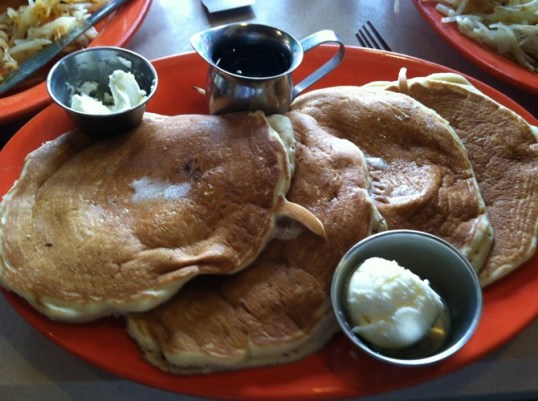 I ordered the pancake platter which included two cakes, hashbrowns, and your choice of bacon or sausage for $6.49. I’m a bacon kind of guy, that’s what I do. The sweet cream pancakes were fantastic. I really enjoy pancakes, but I usually order french toast or waffles just because of pancake exhaustion. “What is pancake exhaustion?” you might ask. Pancake exhaustion is that third or fourth cake. The one that doesn’t taste special. The one that makes you sick. It’s the cake that says to your face, “Why’d you choose pancakes, boy?” I suffered absolutely no pancake exhaustion with these sweet cream cakes. They were delicious, sweet, and dense. I could have eaten them without any syrup or butter, which is something I’d never say about an ordinary buttermilk cake. The bacon was your standard bacon. Nothing special to report.
