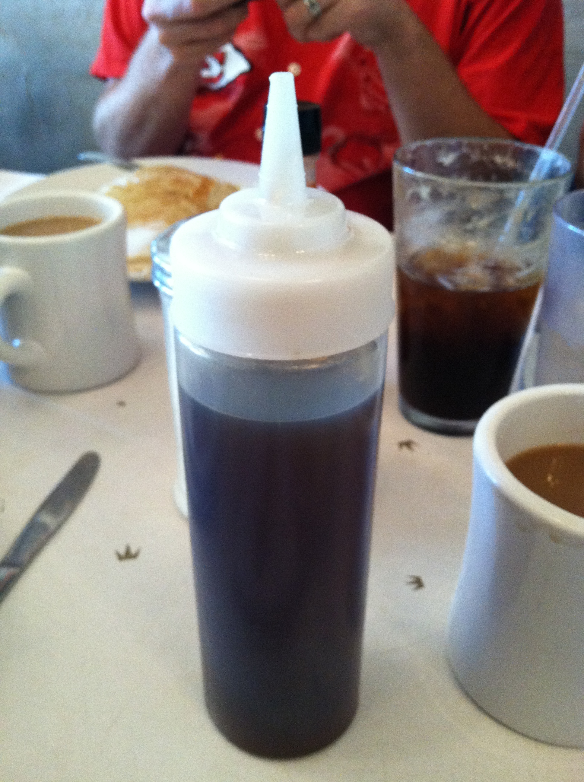 I’m not going to beat around the bush, this french toast was dynamite. The bomb. Incredible. I’m always worried when I get french toast that I’m not going to be full, and yet I always get there. These six pieces were the perfect amount. The texture was exceptional, the flavor was buttery and milky, almost melt in your mouth. The butter was a healthy portion, the perfect amount for spreading across each piece. Succotash features syrup in a squeeze bottle, much like the classic red ketchup bottle (see below). I love it! It isn’t warm syrup, but it’s a convenient, clean way to dispense your sweets, and it works like you wouldn’t believe. The bottomless coffee was a perfect pairing with these delicious slices. I was left satisfied, full and ready for a nap. The french toast is $8 with bacon & eggs, or $6 without.