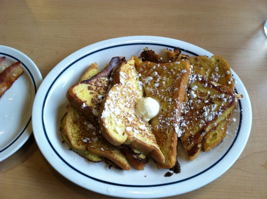 IHOP’s original french toast has become my standard idea of what french toast is or should be. When I think french toast, I think of three pieces of bread, cut diagonally and placed symmetrically on a plate with a dollop of butter placed in the center. And it’s not just the aesthetic of french toast, it’s the taste. IHOP’s french toast is dependably the same, every time, and in a completely suitable fashion. Warm, soft, perfectly rich, and a perfect match for a few strips of bacon. At $6.29, it’s an affordable meal. It’s not the best french toast I’ve ever had, and that probably won’t change, but it’s something I crave often, which says something.