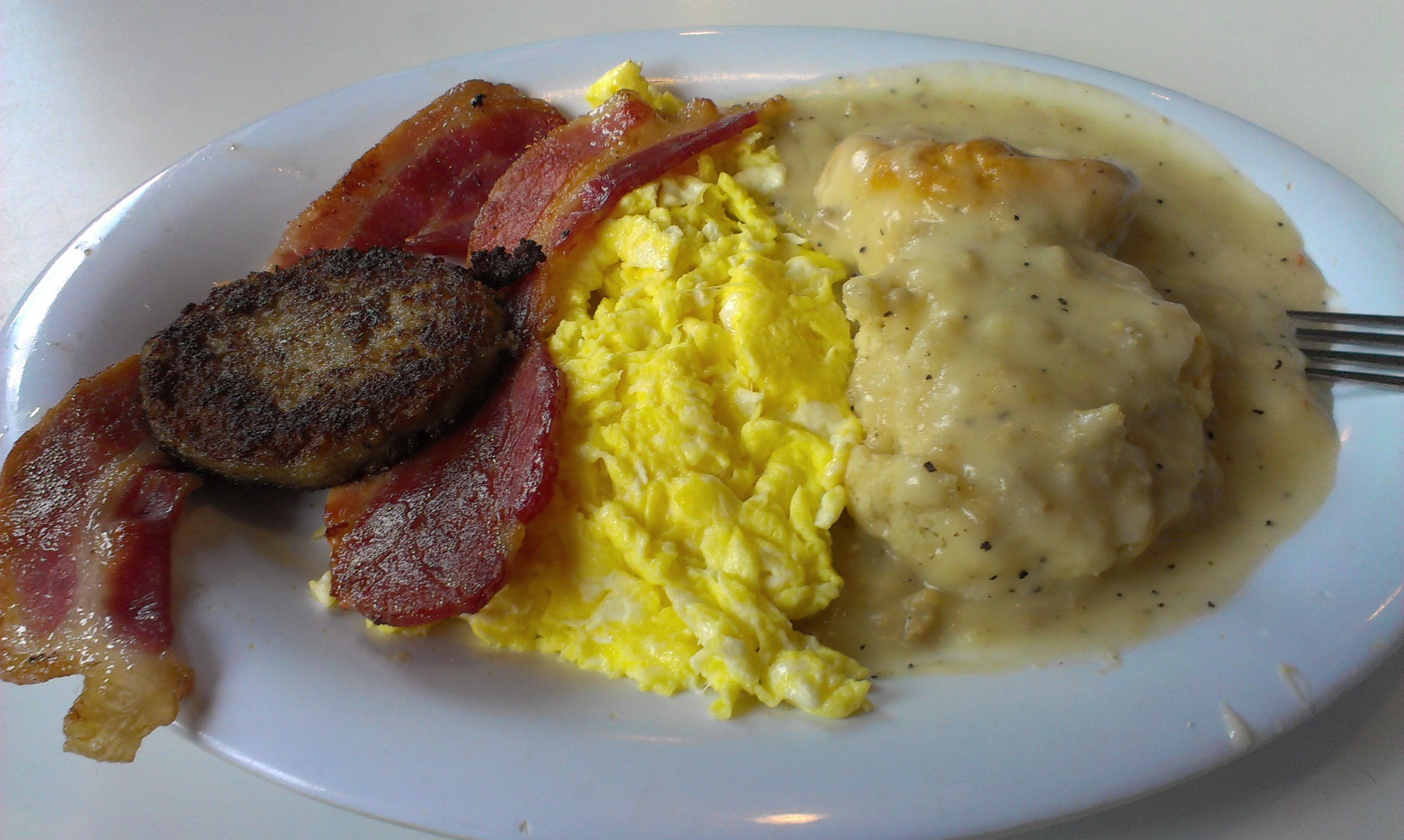 My traveling companion asked how I felt about the sausage patty vs. sausage link debate. He appears to lean more towards the links. All I can say is that sausage is good in its many wondrous forms.